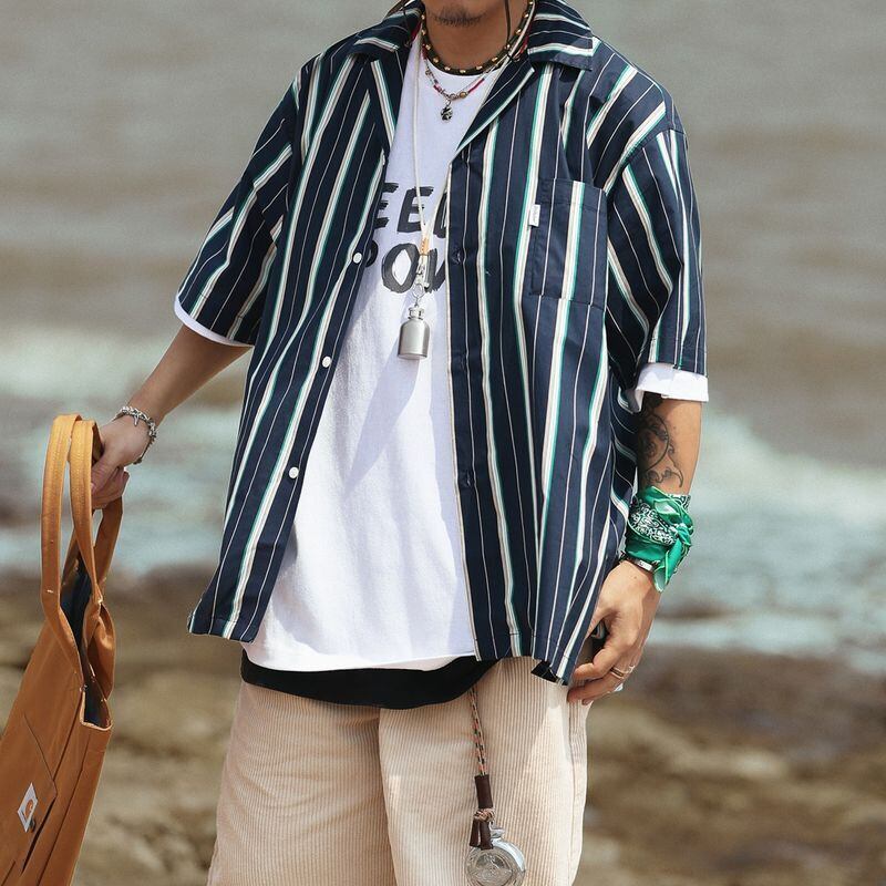 M 肩幅:50cm バスト:116cm 袖丈:25cm 着丈:70cm