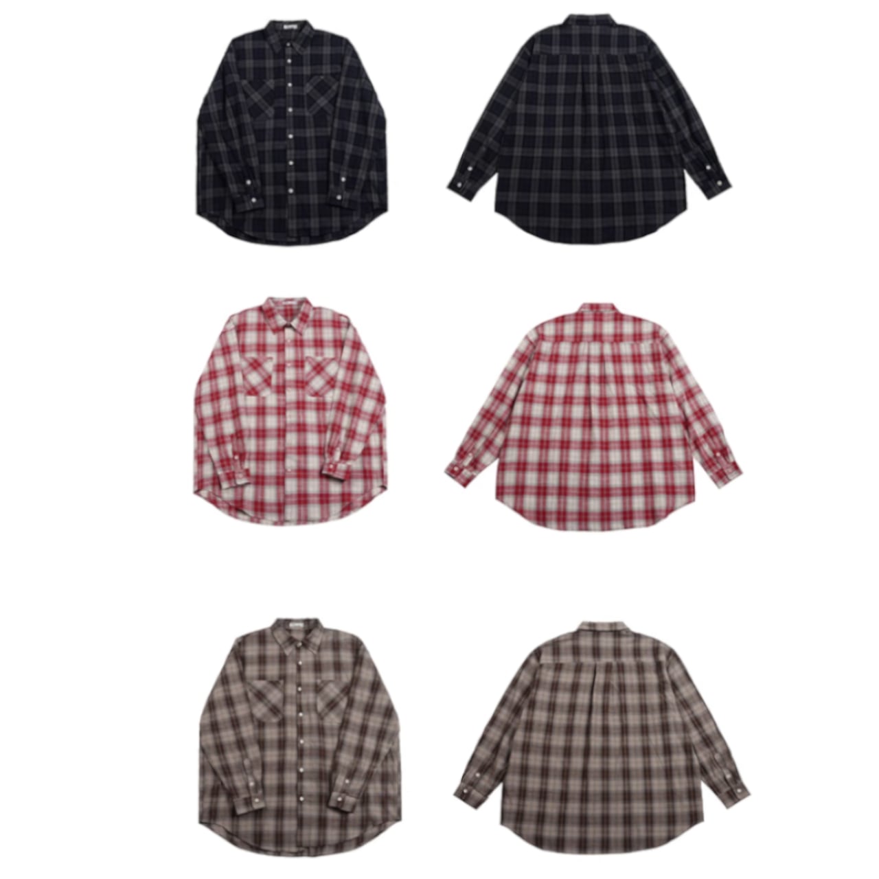 チェック柄 長袖ルーズシャツ 3カラー A1012
