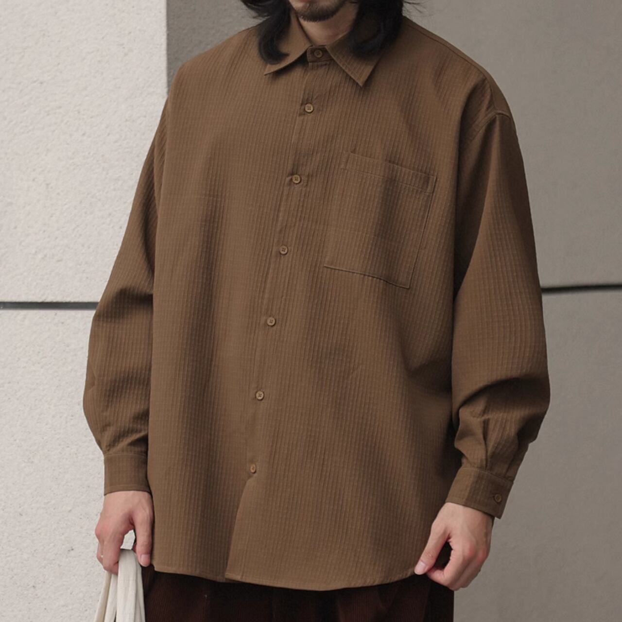 テクスチャー ルーズ 長袖シャツ 4カラー A1013