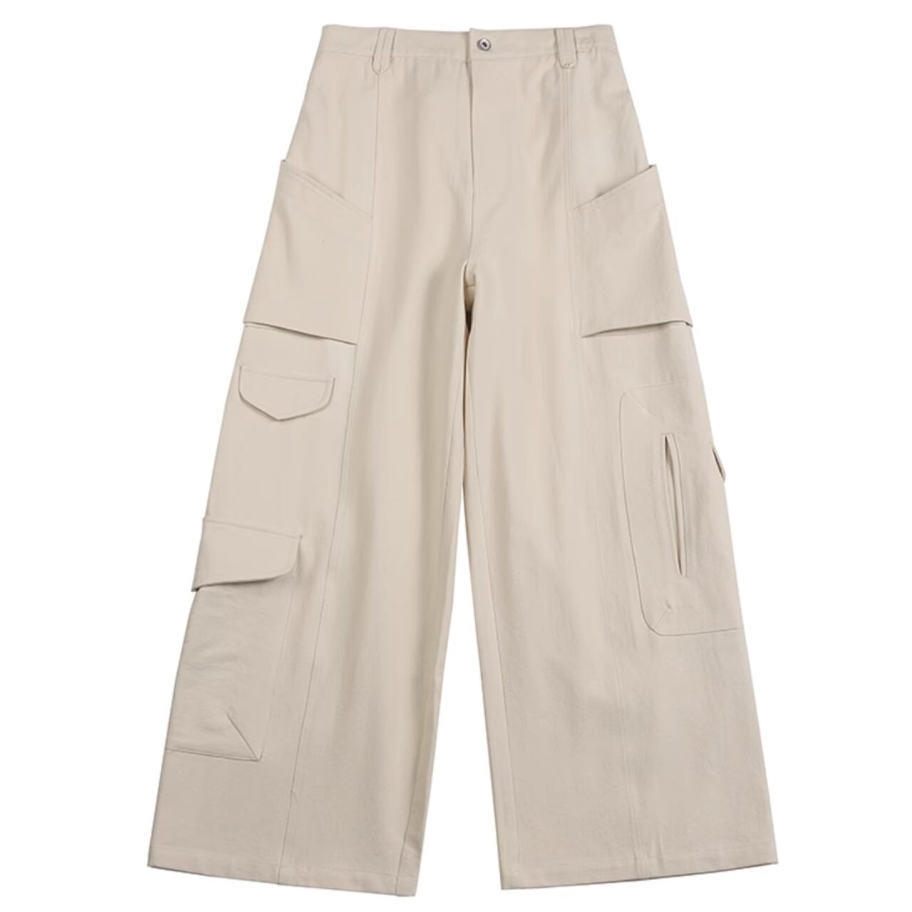 ストレート ベージュ マルチポケット カジュアルパンツ A1015