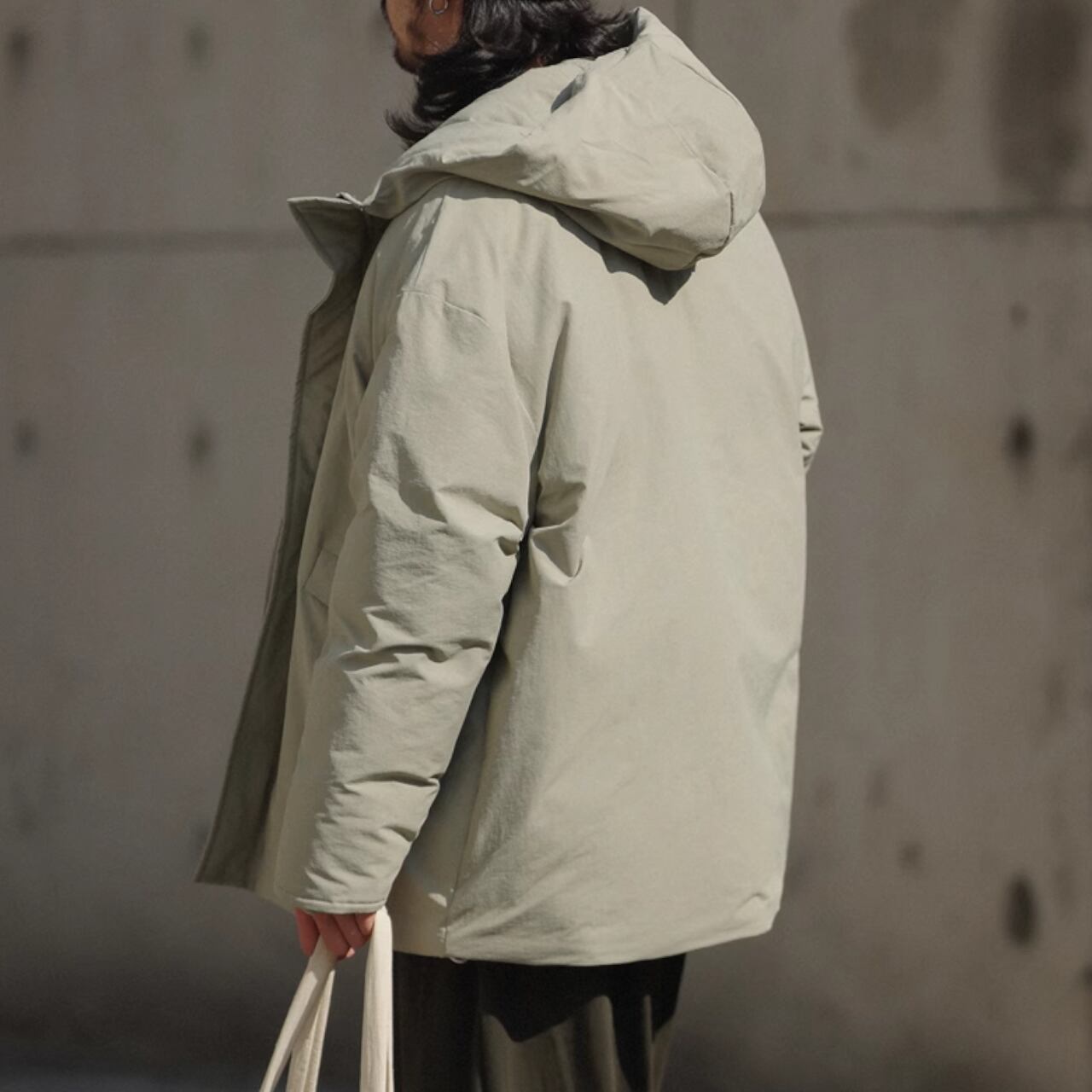 このジャケットは、ナイロン100%の素材で、ビーングリーンとブラックグレーの2色展開。